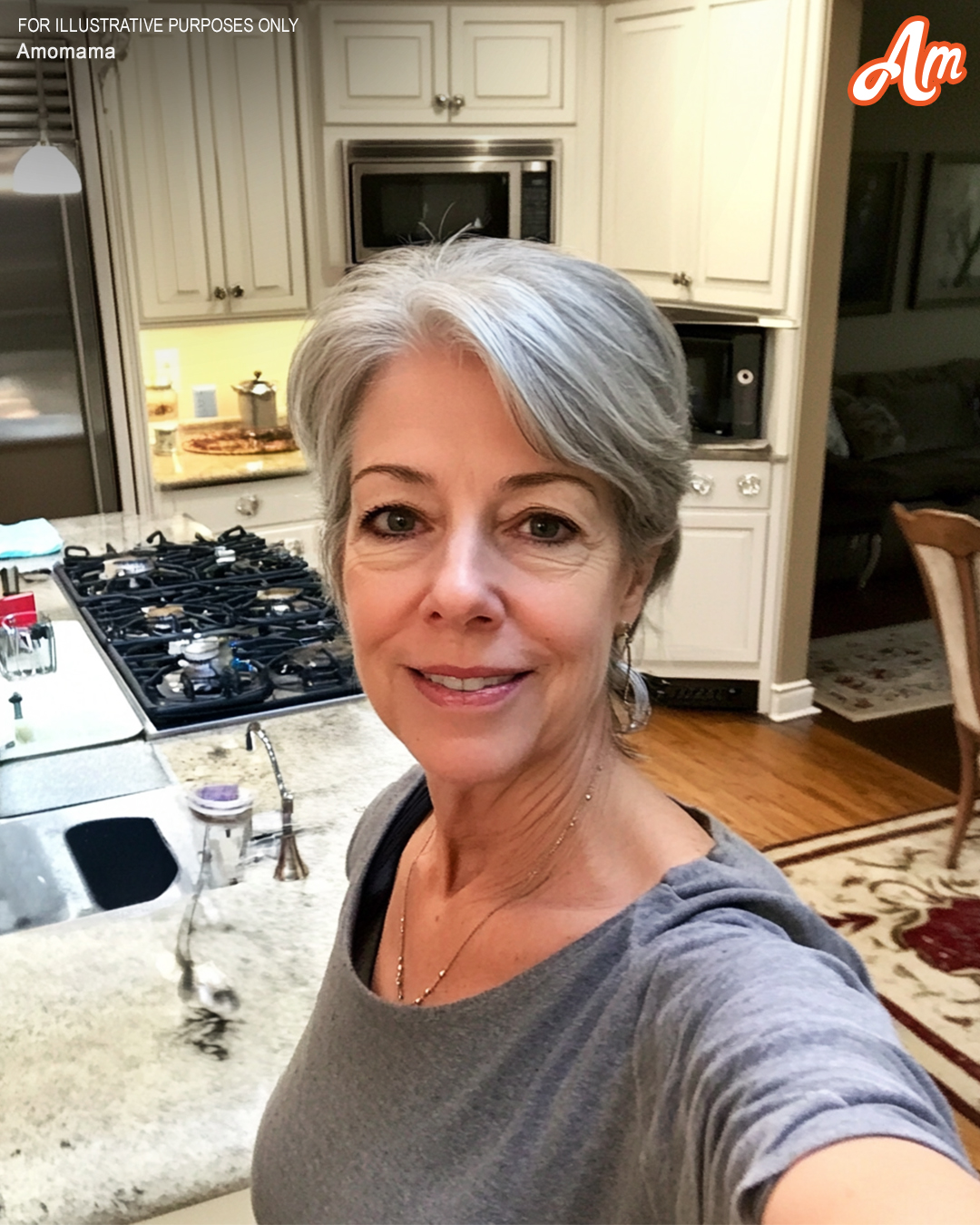 A woman using her phone in a kitchen | Source: Midjourney