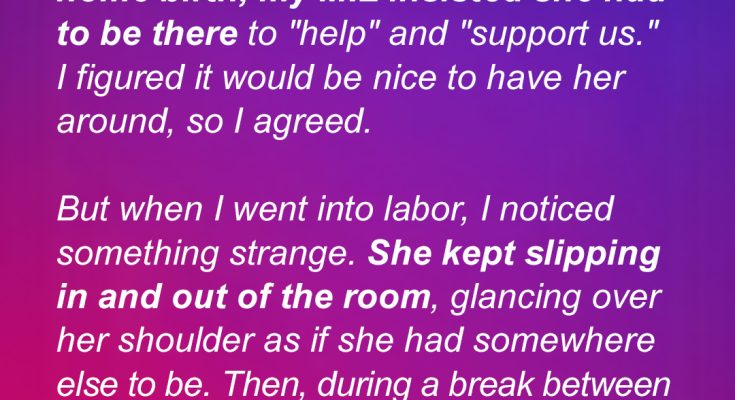 My mother-in-law insisted on helping with my home birth, but something felt terribly wrong as she kept slipping out. The moment she left the room again, I heard unsettling voices outside. When I saw what it was, I froze.