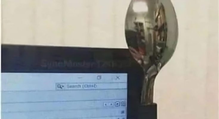 Believe it or not, a simple metal spoon can serve as an effective makeshift rearview mirror for computer screens. Here’s how it works: