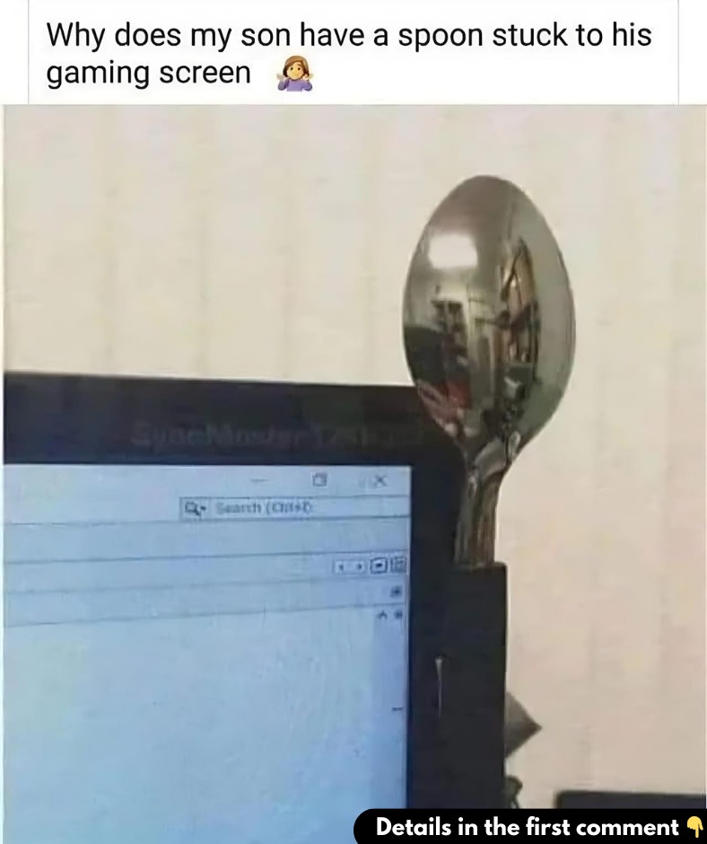 In the end, the spoon-on-the-monitor trick is a fun, low-cost solution that showcases how a bit of creativity can address a real problem. It’s not perfect, but it’s a quirky, memorable hack that keeps gamers in control of their screen privacy. So, the next time you see your kid’s monitor adorned with a spoon, don’t be too quick to dismiss it. It might just be their way of keeping things private—one reflection at a time.