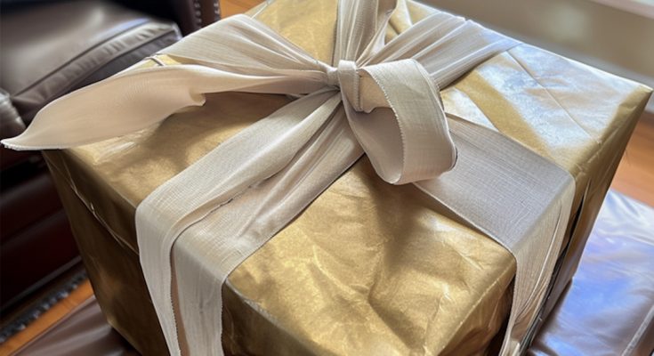 She hurried out of the room, her heels clicking with excitement. A few minutes later, she returned, carrying a box wrapped in delicate silk.