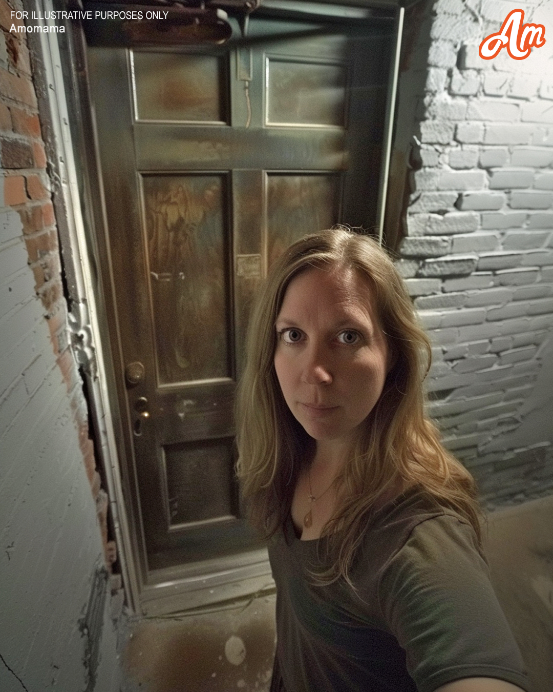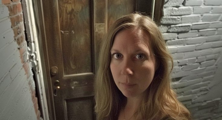 A woman whispering to a basement door | Source: Midjourney