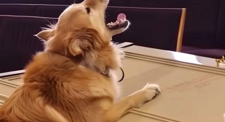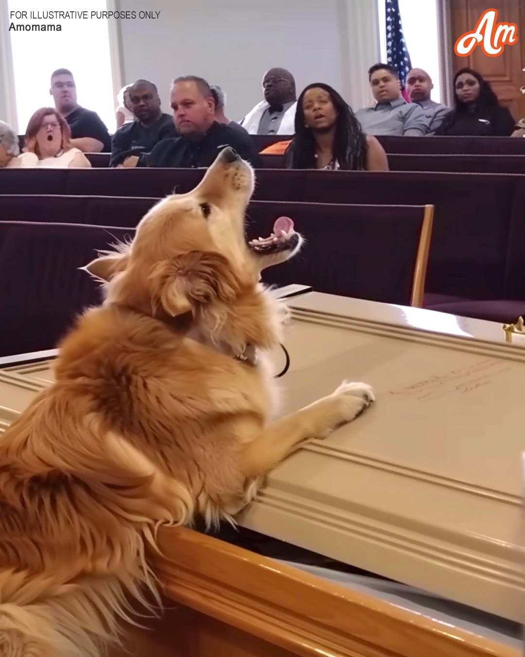 Just as the mass ended and mourners rose to sing the final hymn, Bella’s bark echoed through the church. She jumped on the casket, knocking the flower arrangement to the floor, and began barking loudly.