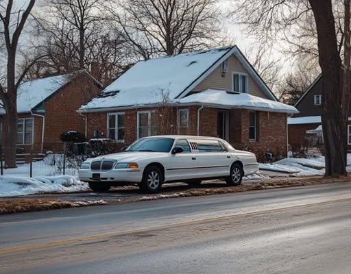 A white limousine parked outside Greg's house | Source: Midjourney