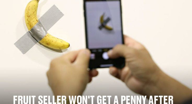 A fruit seller won’t get a penny after an artist sold one of his 20p bananas for a whopping £5 million.