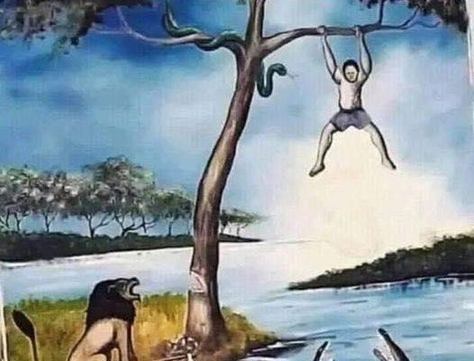 In this riddle, a man finds himself in a tough spot: there’s a snake on his right, a tree on his left that could fall into a crocodile-filled lake, and a lion nearby.