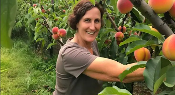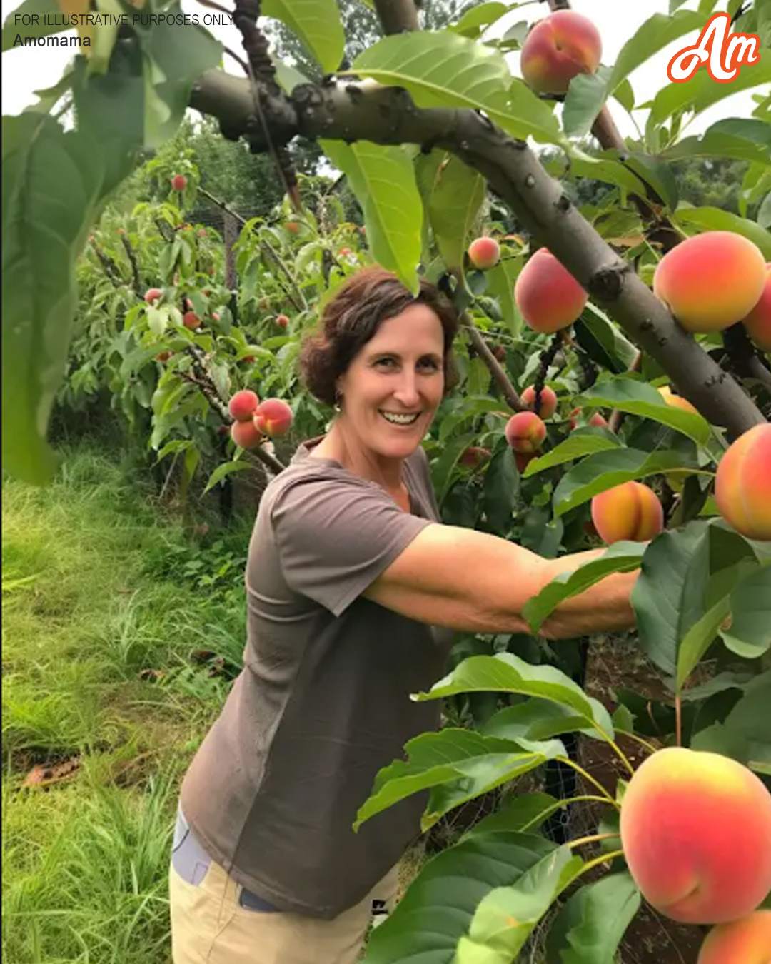 A woman in a peach orchard | Source: Midjourney