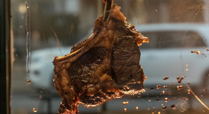 A steak falling on a surface | Source: Midjourney
